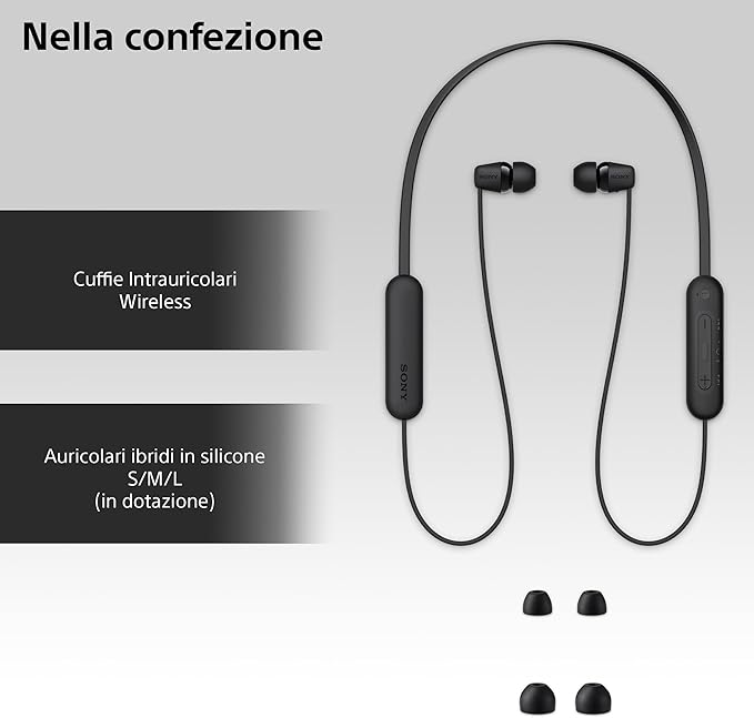 Sony WI-C100 Auriculares Inalámbricos – Hasta 25 Horas de Duración de la Batería, Micrófono Incorporado para Llamadas, Compatible con Asistentes de Voz, Conectividad Bluetooth Fiable, Negro