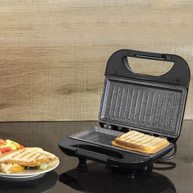 Cecotec Sandwichera con Revestimiento Antiadherente Rock’nToast Square. 750 W, Revestimiento de Piedra, Capacidad para 2 Sándwiches y Superficie Grill, Asa Tacto Frío, Recogecables
